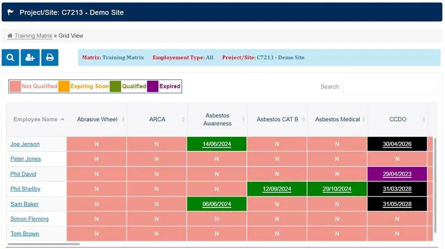 • The Training Matrix ensures certificates are current and personnel correctly qualified